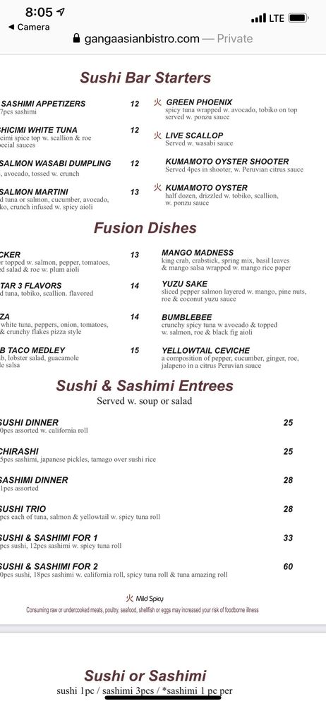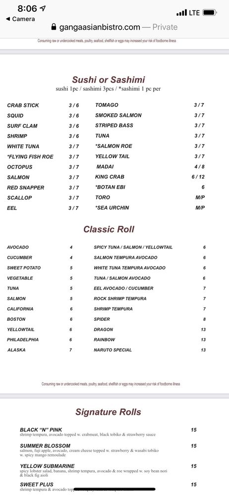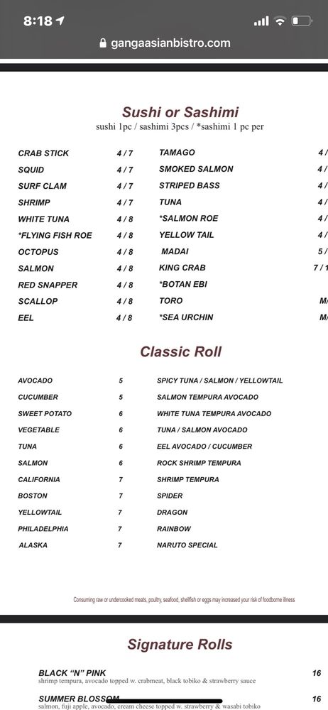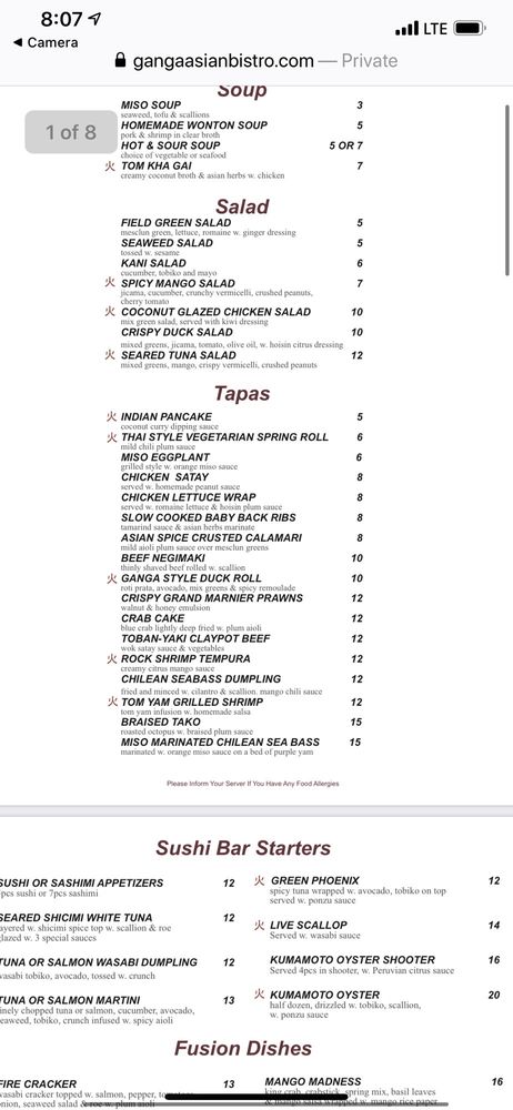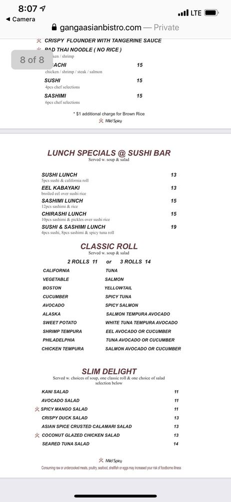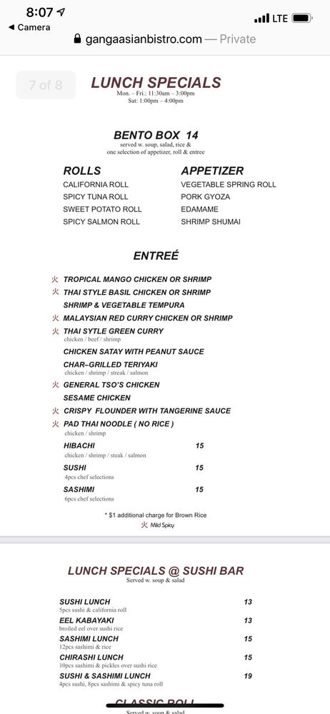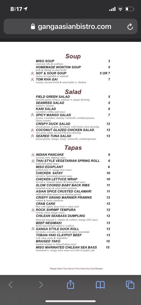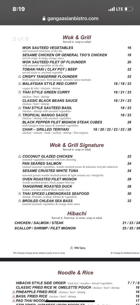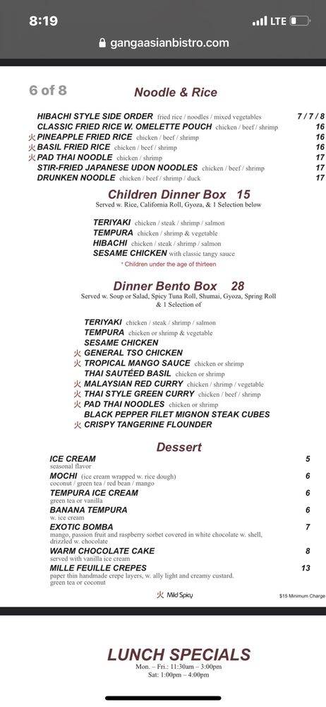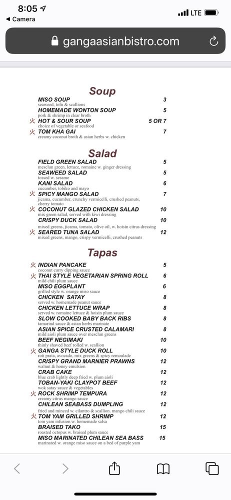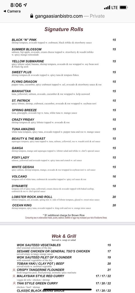 Ganga Asian Bistro Menu